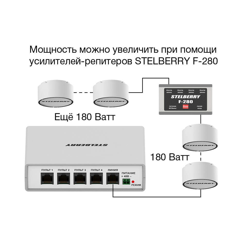 | F-280 | Усилитель-репитер для наращивания мощности системы на 180 Ватт |