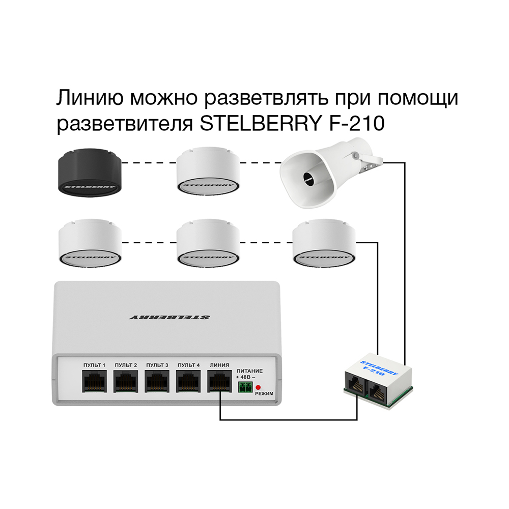Коммутатор STELBERRY F-200 предназначен для построения системы громкого оповещения Антитеррор в школах, детских садах, гостиницах, объектах здравоохранения, торговых комплексах, спортивных объектах и других местах массового скопления людей.