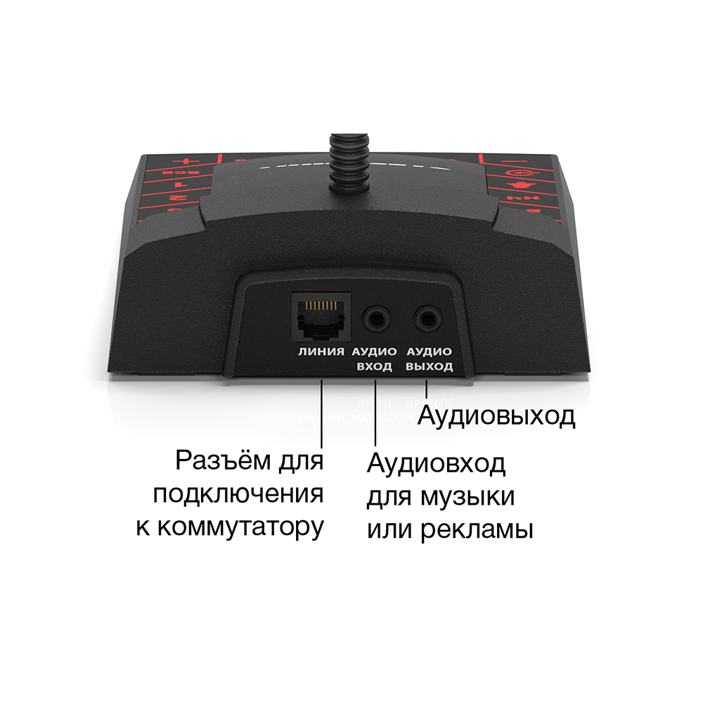 Пульт громкого оповещения для системы Stelberry Антитеррор. Подключается к коммутатору Stelberry F-200. Максимальное расстояние до коммутатора 500 метров. Однонаправленный кардиоидный микрофон в гибкой стойке пульта. Аудиовход jack 3,5 mm для внешнего источника звука (музыки). Аудиовыход jack 3,5 mm для записи сообщений на IP камеру, видеорегистратор, аудиорегистратор.