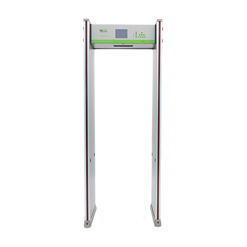 Арочный металлодетектор, 18 зон детектирования, датчик измерения температуры, 256 уровней чувствительности, звуковая тревога, 5,7" LCD дисплей, 2-е светодиодные полосы, подсчет количества людей и срабатываний тревоги.