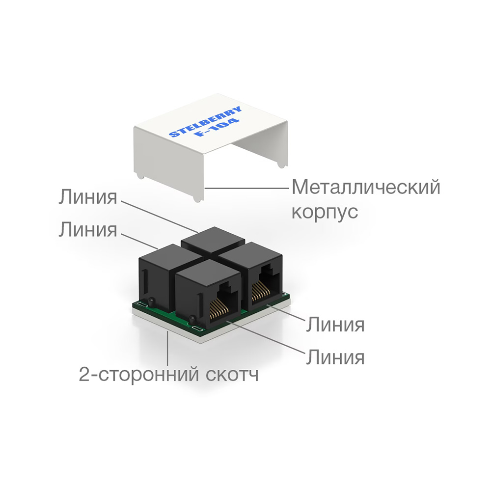 Также, разветвитель STELBERRY F-104 может применяться для удлинения линии, если расстояние до громкоговорителя большое и бухты UTP-кабеля (305 метров) не хватает. Удобное решение для разветвления линии громкого оповещения STELBERRY.
