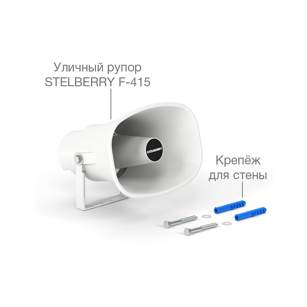 Рупорный громкоговоритель STELBERRY F-430 предназначен для построения систем громкого или речевого оповещения и музыкальной трансляции складов, спортивных площадок, автозаправочных станций, парков.