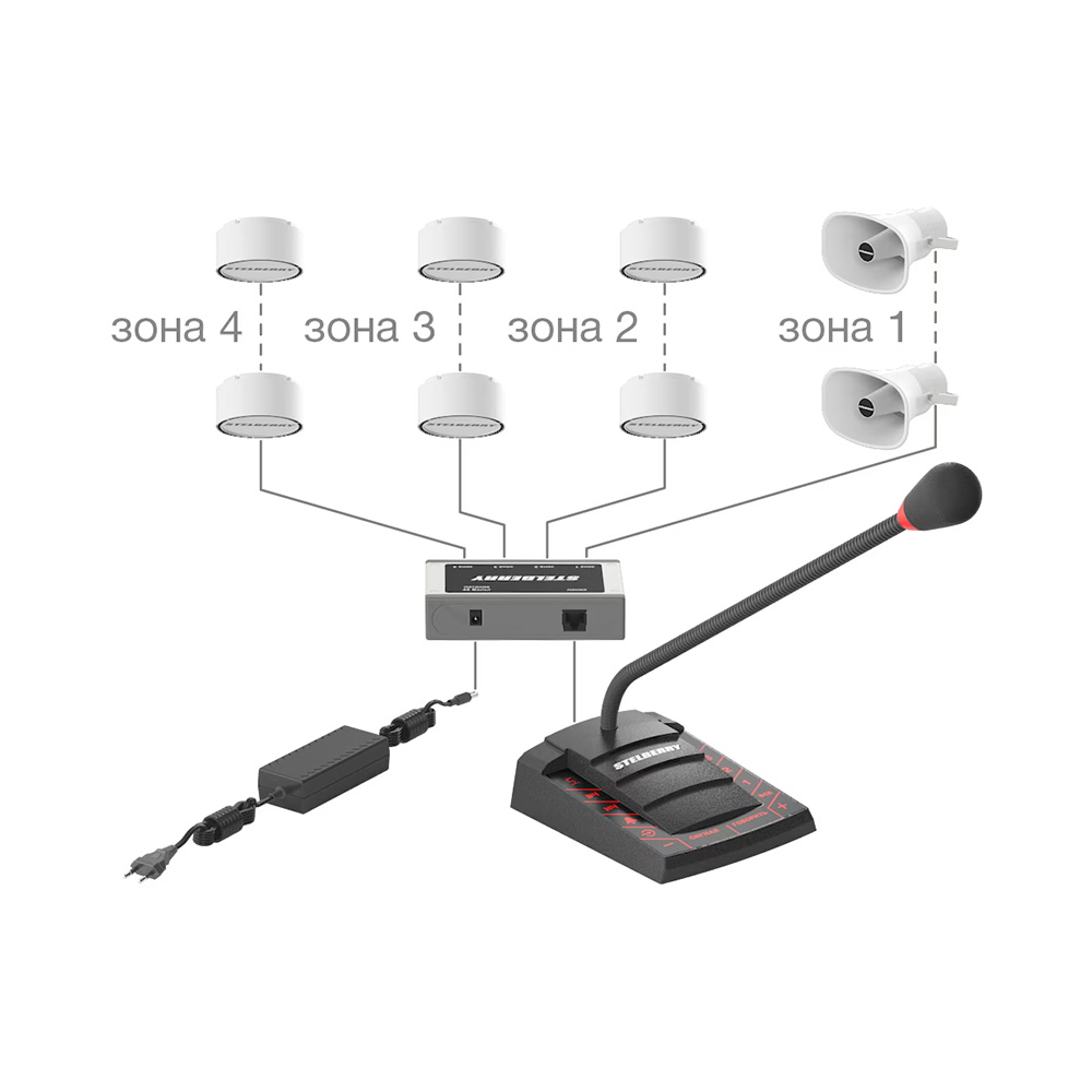 Пульт громкого оповещения STELBERRY F-740 предназначен для построения распределённых систем громкого или речевого оповещения и музыкальной трансляции. Пульт позволяет озвучивать помещения, разбитые на несколько зон оповещения.