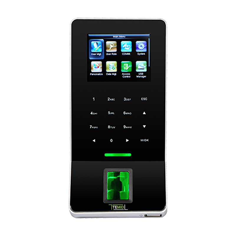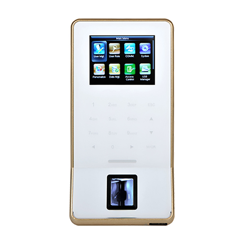 Ультратонкий терминал учета рабочего времени и контроля доступа. Чтение мокрых, сухих или поврежденных отпечатков пальцев. Дисплей цветной 2.4" TFT. Память шаблонов отпечатка пальца 3 000. Память RFID карт 5000.Опционально считывтаель RFID карт Em/MF.Память журнала событий 30 000. Интерфейсы: RS232/485, TCP/IP, USB-хост,Wi-Fi. Входы\выходы: дверной замок, дверной датчик, кнопка выхода, «тревожный» выход, Wiegand Вход\ выход AUX Вход-1 Питание.