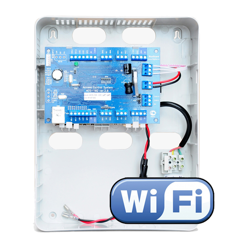 Сетевой контроллер, интерфейс связи c сервером: Ehternet 10/100 Base-T, CAN-HS, 2 интерфейса считывателей: TM, Wiegand-26/37/44/50 + 1 интерфейс считывателя картоприемника: Wiegand. Интерфейс клавиатуры (PS\2, KBW), память контроллера: до 64 000 ключей\ до 60 000 событий, 8 иполнительных программируемых реле, 2 охранных шлейфа, температурный режим от 0 до +50, пластиковый корпус, встроенный блок питания 2,5А (место для установки АКБ 7Ач), встроенный WiFi модуль (точка доступа).