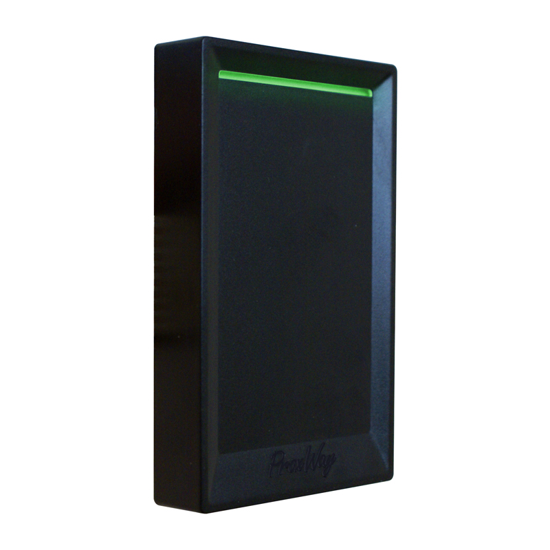 Бесконтактный считыватель, идентификаторы – карты и брелоки MIFARE, интерфейс связи с контроллером - DS1990A, Wiegand-26, -34, -37, -40, -42, -58, диапазон рабочих температур от –40 до +55 °С. IP–54, питание от 8 до 18 В , габаритные размеры 94х55х15 мм.