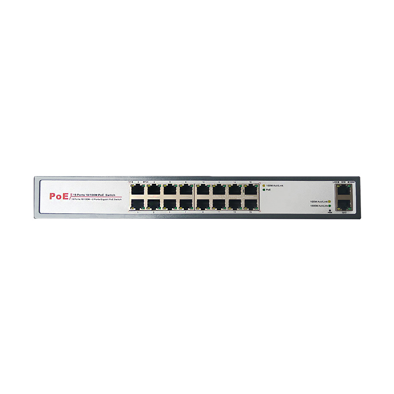 PoE свитч 10/100Base-TX, RJ-45 Auto-MDI/MDI-X, 16 PoE портов + 2 UpLink порта, стандарт PoE IEEE 802.3af, выходная мощность на порт макс. 15,4 Вт, 46-52 В DC, общая мощность макс. 96 Вт. Питание ~100-240 В AC, 50-60 Гц. Цвет: графитово-серый.